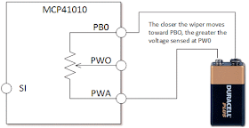 Se pot comanda mai multe potentiometre de genul asta, prin conectarea pinilor SI, respectiv SCK la pinii SPI corepsunzatori, iar pinii CS la pini diferiti, deoarece potentiometrul schimba valoarea doar daca pinul CS este la masa...